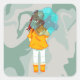 Adesivo Quadrado Garota com guarda-chuva na espiral verde do vento