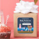 Esta bela e divertida placa de chá de fraldas apresenta um urso marinheiro náutico num convés de madeira com uma gaivota e um caranguejo. Ao fundo há um farol rosa e branco, um pássaro giro em um veleiro, ondas oceânicas e um marinho azul estrelado céu noturno. O texto combina fontes em negrito e sem serifa para uma aparência na moda e moderna. Isto é perfeito para um chá de fraldas temático náutico.