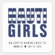 Prepare-se para zarpar com este adesivo listrado azul e branco com a frase divertida "Garotas Nauti". Perfeito para festas de despedida de solteiro e solteira, este adesivo temático náutico adiciona um toque de humor à sua celebração. Personalize o texto para torná-lo exclusivamente seu. Ideal para uma festa na água ou para qualquer tripulação que ama o mar e está pronta para celebrar.