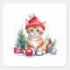 Adesivo Quadrado 🎅 Gatinho de Natal bonito com Papai Noel e Presen