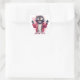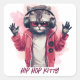 Um gato na moda num capuz vermelho e fones de ouvido, jogando suas patas como um verdadeiro mestre do DJ.