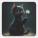 Adesivo Quadrado Gatinho Negro com margarida branca