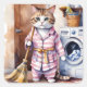 Adesivo Quadrado Gato Adorável de Pijama Engraçado na Lavanderia