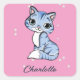 Adesivo Quadrado Gato azul bonito com nome personalizado rosa