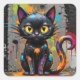 Adesivo Quadrado Gato com respingos de arco-íris preto