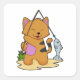 Adesivo Quadrado Gato como pescador com cana de pesca e peixe