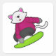 Adesivo Quadrado Gato como Snowboarder com Snowboard