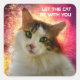 Retrato de um bonitinho e adorável gato calico com olhos verdes, nariz rosa e pele multicolorida e lisa. O belo animal de estimação parece hetero em seus olhos. Uma pintura digital de uma fotografia. Um adesivo quadrado engraçado para qualquer um. Personalizável. Você pode alterar a imagem e pode alterar ou excluir o texto de modelo DEIXE QUE O CAT SEJA COM VOCÊ. Você pode usar a imagem de seu próprio gato em vez da imagem de modelo, se quiser. Você pode transferir este design para uma variedade de outros produtos de sua escolha. Use o botão "Editar Design" ou "Personalizar" (conforme o caso) para ajustar a imagem à forma do produto específico. Ele o transferirá para a Ferramenta Designer. Use a opção "Ajustado/Preenchimento" (menu do lado direito da Ferramenta Designer). Você pode dimensionar, girar, sacudir a imagem no modelo do produto e pode adicionar algum texto próprio a ela. Você também pode alterar o tipo de fonte, a cor, o tamanho etc. Seja criativo, comprar, divirta-se e seja feliz!