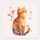 Vinhetas com uma ilustração de aquarela adorável. Um gato de mesa laranja parecendo amigável e feliz com corações girando em volta.