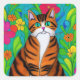Adesivo Quadrado Gato e Flores de Laranja Folha