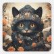 Adesivo Quadrado Gato Preto Adorável em um Escarf e Chapéu