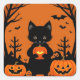 Adesivo Quadrado Gato Preto Bonito com Pumpkins do Halloween