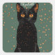 Adesivo Quadrado Gato Preto Místico com Olhos Laranja e Brilho