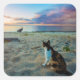 Adesivo Quadrado Gato Sentado Em Uma Praia