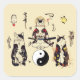 ADESIVO QUADRADO GATOS SAMURAI NO CÉREBRO,ESQUELETO,TATUAGENS DE BO