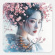 Adesivo Quadrado Geisha portrait, cherry blossoms, Japanese art,