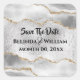 Um belo design de ágata em tons de branco e cinza que tem uma veia dourada falsa atravessando-o, colocado contra um fundo de prata falsa que é ideal para todos os eventos de aniversário, casamento, noivado, chá de noiva e celebração de aniversário especial.