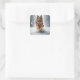 Um German shepherd alegre atravessa um caminho de floresta vitoriosa, chutando a neve suave enquanto ela corre para frente.