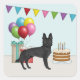 Adesivo Quadrado German shepherd Preto Com Bolo Colorido Aniversári