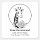 Uma girafa branca e branca com flores e folhas faz uma doce ilustração para o seu adesivo. Abaixo do design estão modelos para adicionar seu nome e endereço para uma aparência personalizada.