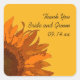 Apor estes bonito X quadrado Laranja Girassol no Casamento Amarelo Agradeça a você os adesivos de etiquetas para os favoritos para festas do seu verão ou outono chá de panela ou recepção de casamento. Estas alegres etiquetas de favorecimento botânico personalizadas apresentam uma fotografia floral melhorada digitalmente de uma flor de girassol laranja num fundo amarelo ouro.