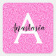A glitter rosa-quente e brilhante brilha o nome do monograma e o adesivo quadrado inicial. Personalize com seu nome e monograma. Você pode até alterar a cor do texto e o estilo e tamanho da fonte usando a opção personalizar!