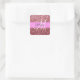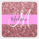 Rapariga e brilho cor-de-rosa cor-de-rosa brilhante brilha o nome do monograma branco e o adesivo quadrado inicial. Seu nome personalizado e monograma são escritos em um elegante roteiro escrito à mão com um fundo rosa. Você pode alterar a cor do texto, o estilo e o tamanho da fonte usando a opção personalizar.