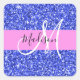 O brilho azul escuro/ marinho e brilho cor-de-rosa brilha o nome do monograma branco e o adesivo quadrado inicial. Seu nome personalizado e monograma são escritos em um elegante roteiro escrito à mão com um fundo rosa. Você pode alterar a cor do texto, o estilo e o tamanho da fonte usando a opção personalizar. Um aniversário perfeito ou presente de Natal!
