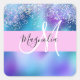 Glam holográfico a sereia brilha o nome do monograma e o autocolante quadrado inicial. Seu nome personalizado e monograma são escritos em um elegante roteiro escrito à mão com um fundo de rosa claro. Você pode alterar a cor do texto, o estilo e o tamanho da fonte usando a opção personalizar.