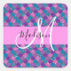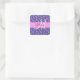Glitter feminino e glam roxo, lilac, aqua e sereia azul brilha o nome do monograma e o autocolante quadrado inicial. Seu nome personalizado e monograma são escritos em um elegante roteiro escrito à mão com um fundo rosa. Um aniversário perfeito ou presente de Natal!
