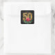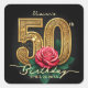 Adicione um toque de luxo vintage à sua celebração de aniversário com estes elegantes adesivos de 50º aniversário. O design apresenta uma tipografia dourada grande e ornamentada com uma textura de filigrana detalhada, combinada com uma rosa vermelha clássica e realista contra um fundo preto sofisticado. Brilhos dourados adicionam um brilho festivo ao layout.