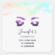 Vinhetas de negócios com uma bela ilustração pintada com aquarela. Bonito olhos roxos e sobrancelhas, olhos fechados mostrando longas e elegantes pinceladas. Uma borda abstrato ao longo do topo com cores verdes, azuis e cor-de-rosa irregulares.