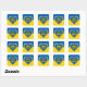 Etiquetas quadradas com a bandeira da Ucrânia, coração nas cores ucranianas e texto dizendo "Glória à Ucrânia" em ucraniano