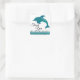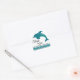 Adorável, Obrigado. Um golfinho azul está pulando das ondas azuis do oceano. Em elegantes letras negras à esquerda do golfinho estão as palavras Obrigado.
