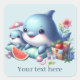 Adesivo Quadrado Golfinho de praia bonito adiciona texto Vinheta qu