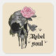Esta ilustração retrógrada, moderna e única ao estilo do gótico de um crânio com uma rosa rosa rosa apresenta a frase artística "Alma Rebelde". É perfeito para amantes do gótico para o Halloween, o Dia dos Mortos, ou apenas para dias regulares.