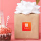 Adesivos Quadrados. Veja este modelo maravilhoso com um lindo fundo de gradiente laranja e fontes luminosas! Uma maneira única de mostrar apreço ao seu cliente e espalhar a palavra sobre a sua empresa.