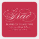 Etiquetas de graduação elegantes com "Formando" em script de caligrafia branca com o nome do formando, a escola e o ano de graduação mostrados abaixo. Os adesivos de graduação vermelha são perfeitos para selar envelopes, favorecer bolsas etc.