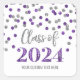 Classe de nome personalizado de adesivos de graduação 2024 com padrão de configuração prateado e roxo com texto moderno com estilo escrito.