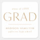 Etiquetas de graduação em na moda com "Formando", apresentadas em caracteres dourados modernos, com fundo branco. Personalize os adesivos de graduação modernos com o nome do formando, o nome da escola e o ano de graduação. Os autocolantes personalizados são perfeitos para selar envelopes, favores de festa de formatura etc.