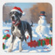 Adesivo Quadrado Grande Dane correndo em neve com chapéu de Natal