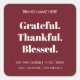 Um rótulo de vela moderno e elegante com as palavras inspiradoras Grateful. Obrigado. Abençoado. em tipografia branca e ousada, num fundo rico e cheio de burlões. Perfeito para o outono, Ação de Graças e velas de férias, este adesivo adiciona um confortável toque sazonal às velas de soja, velas de jarro ou embalagens de velas. Projetada para marcas de pequenas empresas, presentes feitos à mão ou uso pessoal, esta etiqueta de na moda faz com que sua apresentação de vela se sinta quente, festiva e profissional.