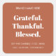 Esta etiqueta de vela moderna contém as palavras altas Grateful. Obrigado. Abençoado. em tipografia branca em negrito sobre um fundo de terracota quente. Perfeito para o outono, Ação de Graças ou férias, este adesivo quadrado é ideal para velas de soja, velas de jarro ou embalagens para pequenas empresas. O design minimalista combina o encanto rústico com elegância moderna, fazer-o como uma escolha versátil para os fabricantes de velas feitas à mão, doadores de presentes e amantes de decoração caseira. Adicione um toque agradável sazonal aos seus produtos ou projetos de vela DIY com esta etiqueta de na moda.