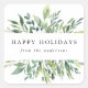 Nossos elegantes adesivos de inverno verde apresentam a saudação "Felizes Feriados" e seu nome enquadrado pela folhagem verde de aquarela.
