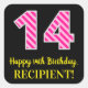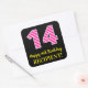 Adesivo Quadrado Greve Rosa Divertida "14": Feliz Aniversário de 14