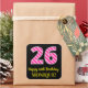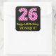 Adesivo Quadrado Greve Rosa Divertida "26": Feliz 26 de Aniversário