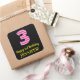 Adesivo Quadrado Greve Rosa Divertida "3": aniversário de 3 anos Fe