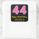 Adesivo Quadrado Greve Rosa Divertida "44": Feliz 44 Aniversário +