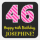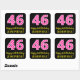 Este design de adesivo quadrado com tema de aniversário alegre apresenta um grande número "46", com uma rosa claro e um padrão de listras cor-de-rosa escuros. Também apresenta a mensagem "Feliz 46º aniversário", e um nome personalizável. O fundo é preto colorido. Bons, alegres, adesivos personalizados como este podem ser dados como presente de aniversário, ou usados enquanto embrulham presentes/presentes, ou talvez usados como decoração de festas de aniversário quando celebram o 46º aniversário de alguém. [~Z0000578]