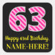 Adesivo Quadrado Greve Rosa Divertida "63": Feliz aniversário 63 +